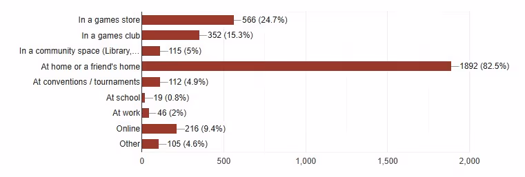 We're seeing more and more store and club play this time, though the majority of you all also play at home. We have to believe this is because of the excellent work of our OPR Rangers Program. More and more community events are reported every month, so we expect to keep seeing this number rise as we bring more players into the game!