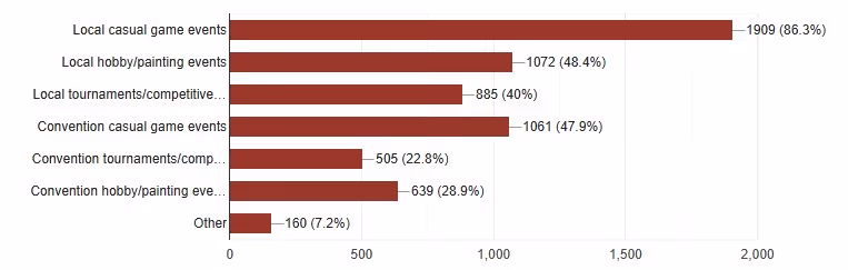 But when it comes to what events you'd be interested in playing? It hasn't changed at all. Casual events continue to be the lead by far with a smaller but dedicated fanbase for competitive events and tournaments. We're going to continue to offer continued support for both audiences through the OPR Rangers Program as well as our expanded Convention appearances and event schedules.