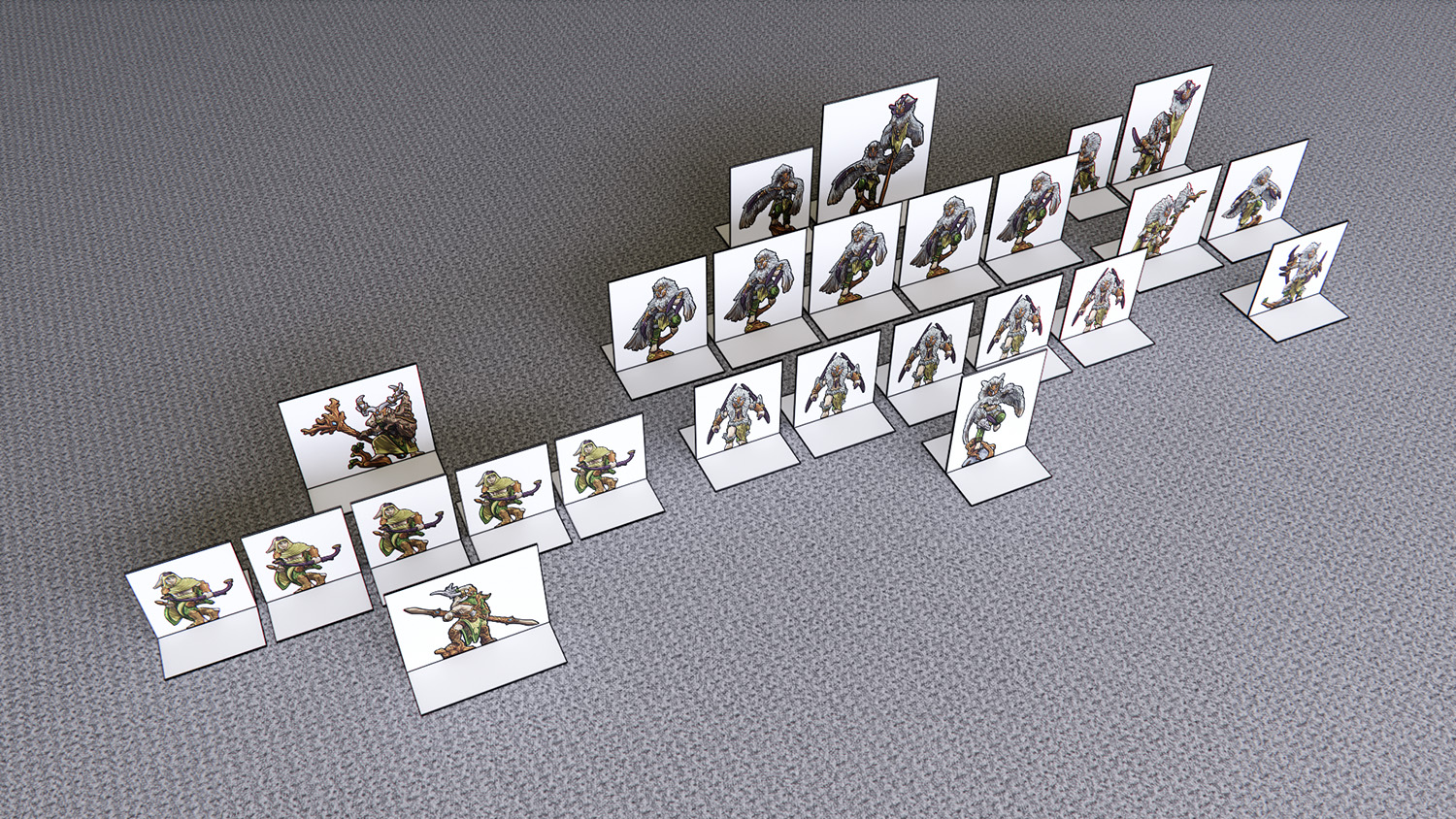These sets feature a ton of minis with front and back views in two different color schemes, as well as black & white. They also include black border versions of the minis, plus VTT tokens to play online.
