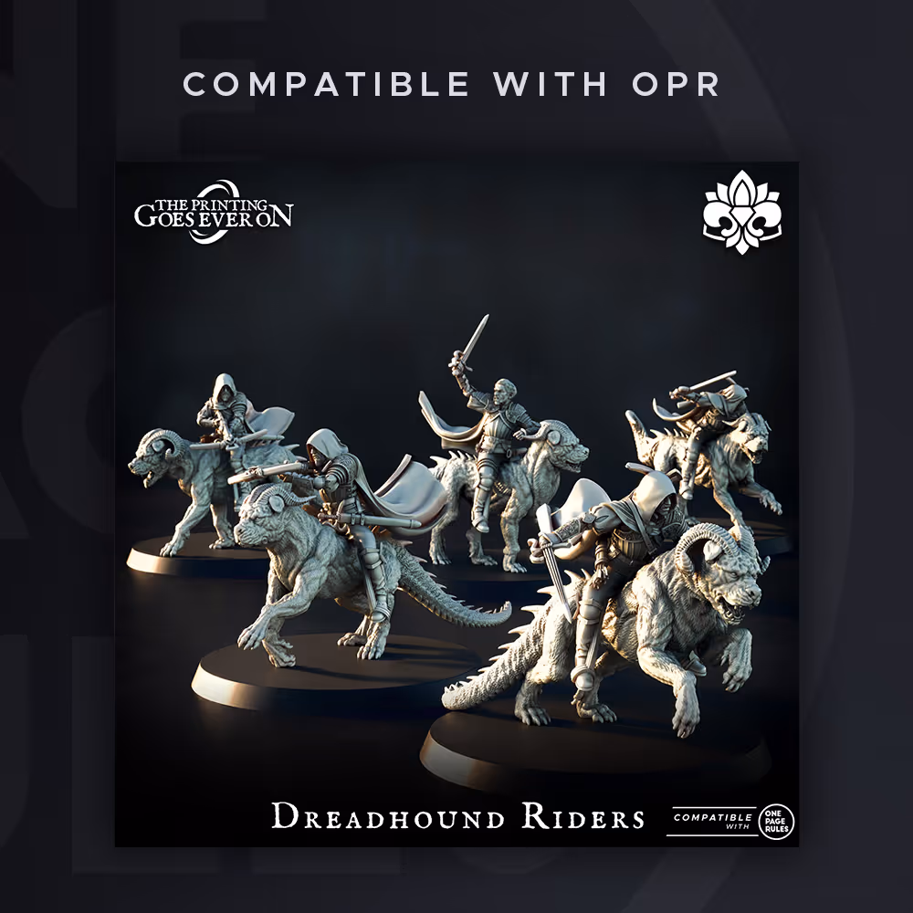 Whenever you see a creator using the "Compatible with OPR" banner, it means that they have OPR army lists that fit their models or make models that fit with existing OPR army lists. Either way, it means that you can easily use their minis to play OPR games with and keep a look out for the "Compatible with OPR" banner!