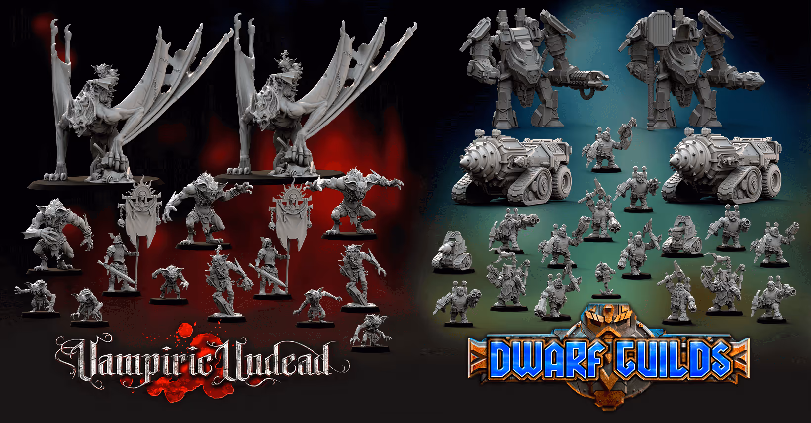 This month we’ve got some new Vampiric Undead and Dwarf Guilds models, plus the Jackals Ship Investigation legendary unit. On top of that we’ve also got the welcome pack, bases, game aids, rulebooks, and much much more.