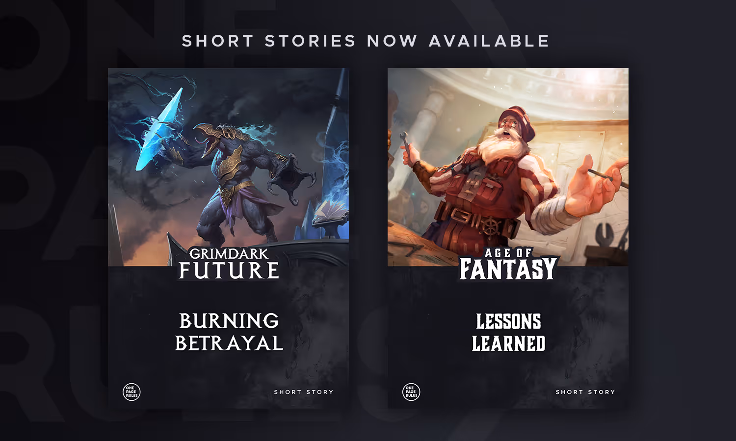 Dive into the worlds of Grimdark Future and Age of Fantasy with two short stories, available now on our website! These stories give you a taste of life and conflict in our settings. All of our stories are available in our Short Stories section of the website, and we will add new stories every month!