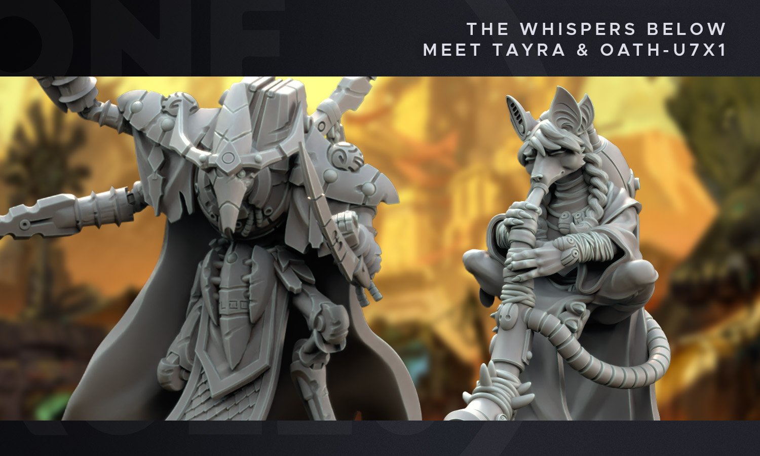 Launching next month on MyMiniFactory's Frontiers, The Whispers Below is an all new Narrative Campaign for Grimdark Future, that sees the scrappy Jackals exploring and looting in places that maybe they shouldn't be while the Robot Legion wake up from slumber after crashing. It allows you to play out the story of these two faction's interactions by playing through 10 brand new missions. It also comes with four new Narrative Heroes. The two we'll be meeting this week are Tayra, a Jackals Shaman, and Oath-U7X1, A Robot Legions Annihilator in charge of security. Even better, their stats are live now on Army Forge if you want to check them out, today!