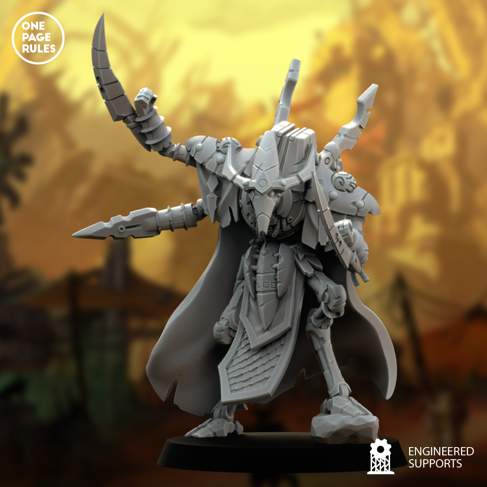 Oath-U7X1's Primary functions are security and enforcement which is why his stats of QUA 3+ and DEF 3+ make him good at both. When it comes to enforcement, his Enforcement Blades do most of the work with 4 attacks at AP 1 which is usually a decent number of attacks all on it's own, but paired with Surge it turns any 6's into even more hits. For Security there's his Protection Feat Aura. It's only once per game, but when he decides to use it him and his unit get an extra roll to prevent wounds on a 4+ which is on top of their Self-Repair. It'll go a long way to saving himself and his security personnel from becoming dormant again before they deal with any intruders.