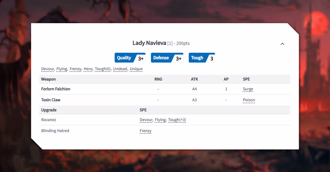 If you want to try her out yourselves in your next Army List, Lady Nevleva's stats, as well as the stats for our other three new Narrative Heroes, are available now on Army Forge!